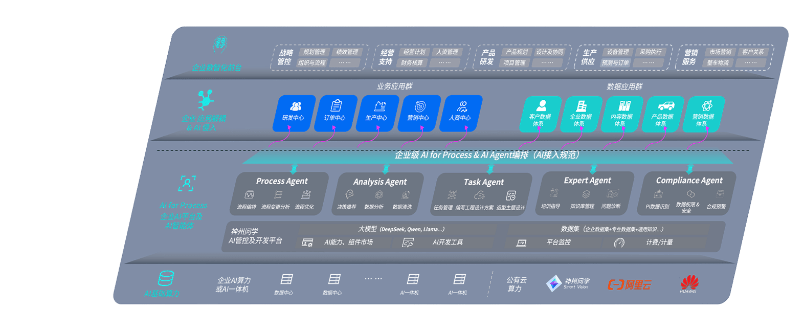 EBpay问学智车解决方案是一套基于AI技术的汽车行业智能化系统,,,,覆盖从底层算力到顶层AI应用的全栈方案。。。方案由算力层、、、、模型层和应用层组成:算力层,,方案支持多种一体机配置,,,,具备云端灵活部署、、、、多云适配以及动态优化计算资源的能力;模型层,,,,EBpay问学平台版提供了企业级AI应用一站式构建与管理平台,,,支持基于后训练强化技术的汽车企业专属模型的训练、、、评测和运营;应用层,,,,EBpay问学DeepSeek版提供包括超级员工、、、智能招采、、智能营销、、、、智能客服、、AI for BI等一系列解决方案,,可助力汽车行业实现数字化转型,,,让管理更智能、、、响应更敏捷。。。。
